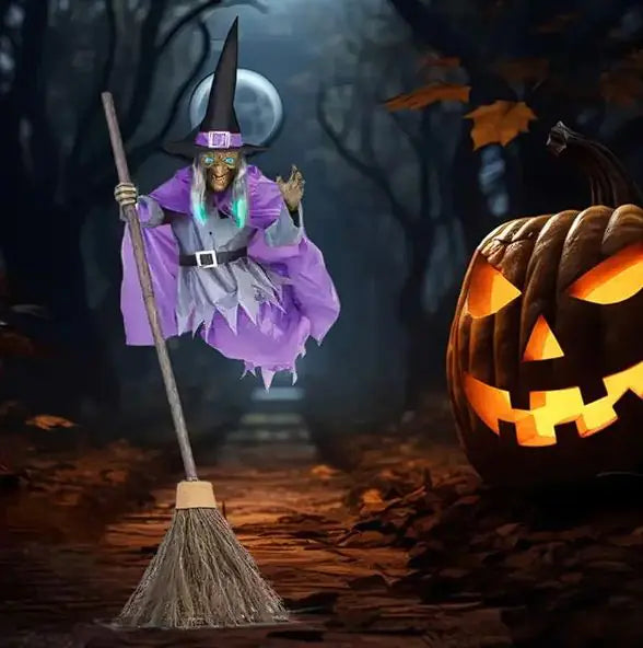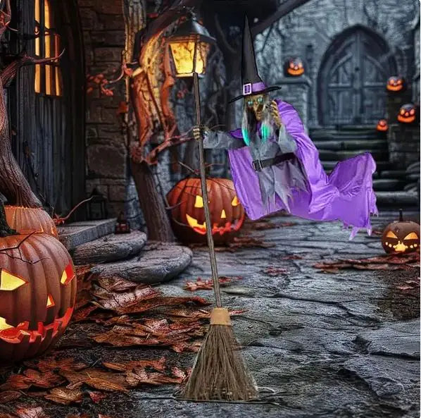 The flying witch looks terrifying at night and the sound adds a great spooky effect.